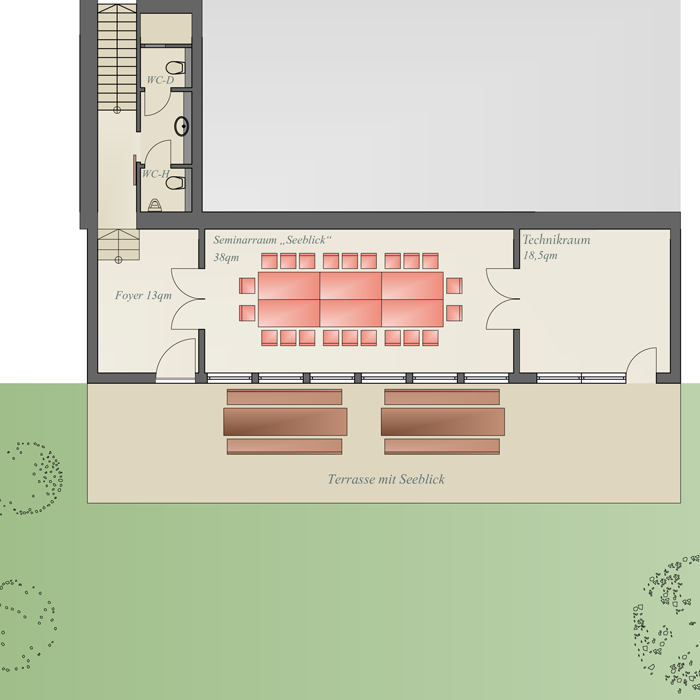 Then hold your meeting “above it all” with up to 20 people, depending on the seating arrangement. We will be happy to provide you with information about room facilities, technical options, catering, and tips for a supporting program for your event.